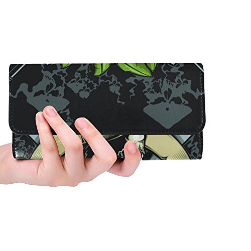 Binding : Apparel Product Description Carry the necessities around in style with this unique trifold wallet. The interior features 12 card slots, 1 zipper pocket, 1 ID window and 2 full length pocket for cash, multipurpose large capacity. The wallet is designed with a hidden magnetic closure. Great as a everyday wallet or as a clutch when you go to party, get the most out of your wallet! Measures 7.48"(L) x 1.22"(W) x 4.02"(H) 0