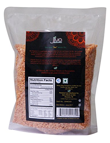 Jiva USDA Organic Masoor Dal (Split Red Lentils) 2 Pound - UPDATED Packaging