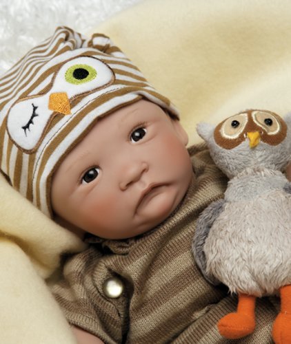 "Hoot Hoot" ist aus weichem GentleTouch Vinyl geformt, fur ein Aussehen und Feeling wie ein echtes Baby