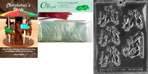 Cybrtrayd Santa and His Team Chocolate Mold with Chocolatier's Bundle of 25 Cello Bags, 25 Red Twist Ties and Chocolatier's Guide