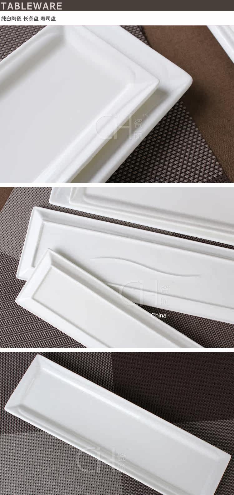 瓷航瑞思长条盘日式长方平盘陶瓷寿司盘盘子餐厅摆盘蛋糕盘