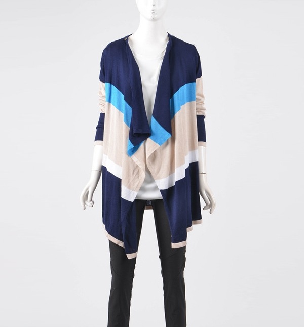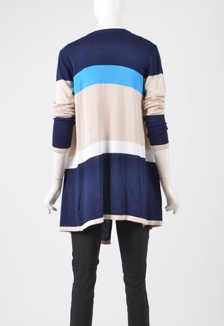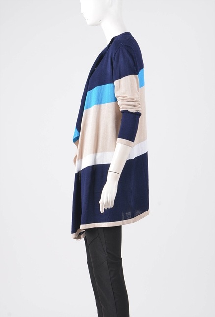 독특한 스트라이프패턴과 떨아지는 앞선이 포인트인 가디건입니다.