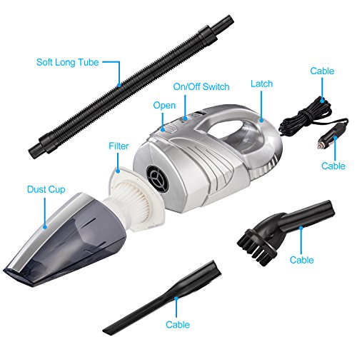 Long Power Cord Design: You can clean anywhere in your car with 5 meters(14.6ft) power cord, perfect for suvs car and etc. The HEPA filter is removable, washable and reusable. Note: Please cool the motor down after 20 minutes usage to prevent vacuum from burnning out. Please wash the filter and container in time to extend using life