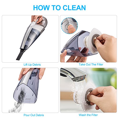 REMOVABLE & WASHABLE HEPA FILTER: We support a bonus HEPA filter, which is detachable and easy to be cleaned. It will be more powerful if start the car first while use the car vacuum and the filter should be cleaned up every time of use.