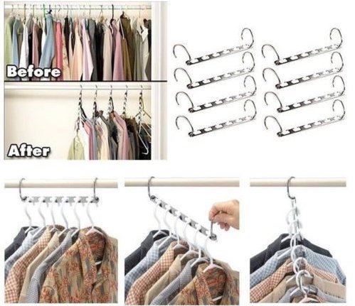 -. Feature : Our steel closet hanger hang six times the amount of shirts, skirts, pants and more in the space of a traditional single hanger. Hang your clothes simply in your chest of drawers or on the clothes allotted slots. Reduce the clothing store space!! Great for belts and other accessories too!!! / This hanger cascader hang six times the amount Great for belts and other accessories too / Material: Galvanized iron Chrome steel, 10 1/4 x 3/4 / 1 x Set of 8 steel hanger TIPS:If you are looking to hang no matter light clothes like shirts and t-shirts, dresses, Or even heavy items, jeans, pants coats and the like, this metal hanger is 100% what you need.