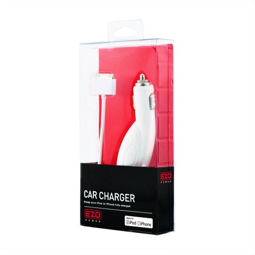 - Feature : EZOPower Car Charger in retail packaging / Made for iPod iPhone / Licensed by Apple. / Keep your phone charged while on the road! / Stable current with built-in short-circuit and over-current protection. / Plugs into car cigarette lighter socket to charge iPod or iPhone. A convenient, travel-ready solution for keeping your iPod or iPhone charged when you are on the road.