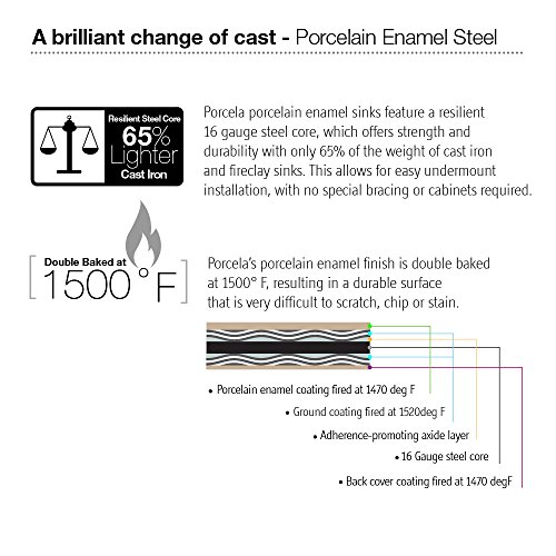 Houzer PCG-3600 BQ Porcela Series Porcelain Enamel Steel Undermount Single Bowl Kitchen Sink, Large, Biscuit