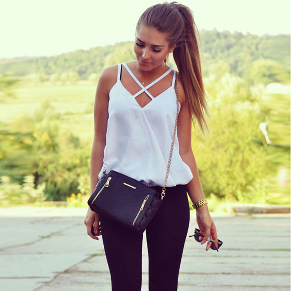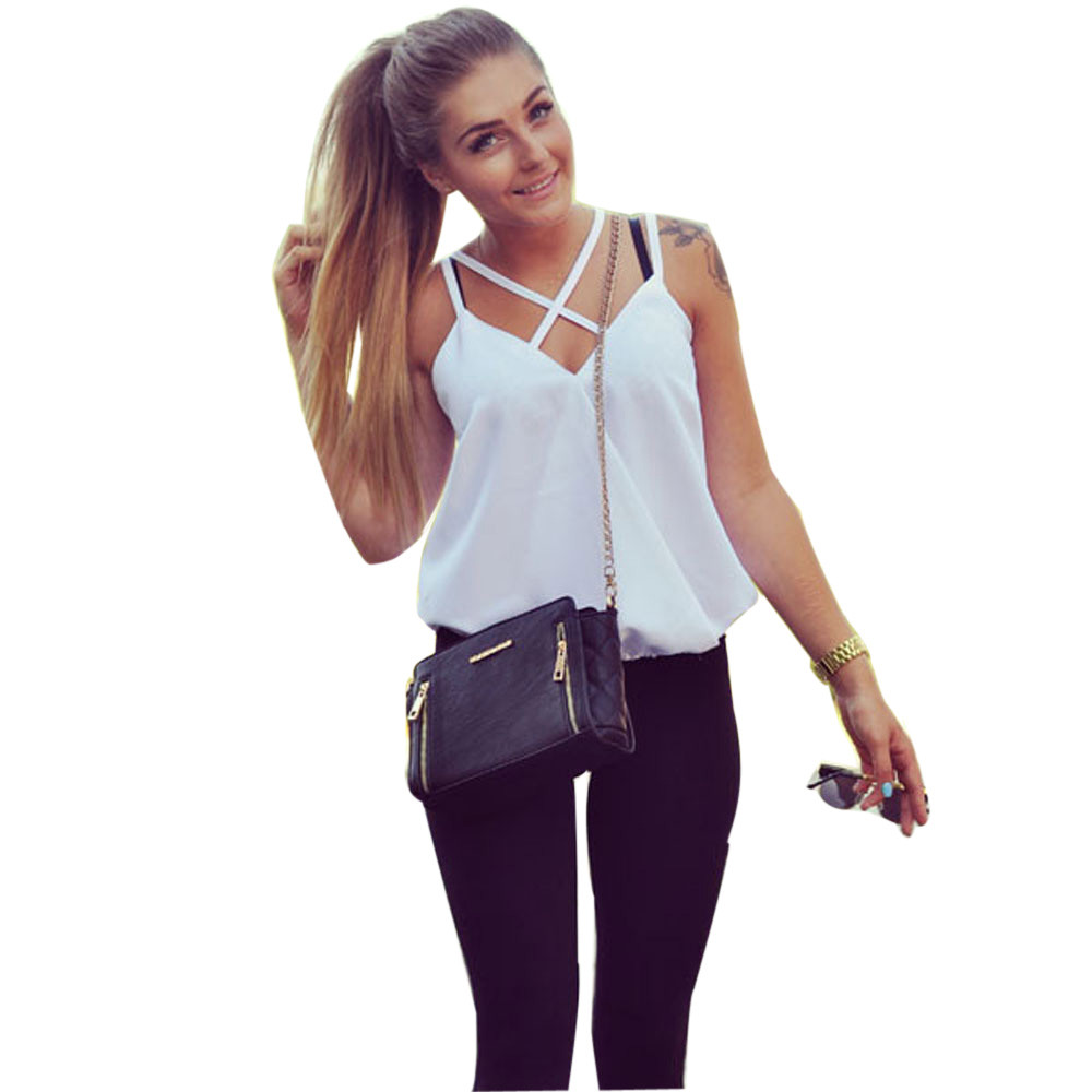 summer Women vest Solid Cotton Blend Fashion Cross Strap Halter Top Vest female V Neck Cross vest halter top White Shirt blusas