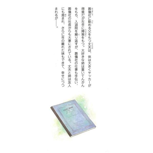 【商品説明】 定価(税込み):1,404円 値引き:10% OFF 葬儀社に勤める父をもつ丈夫は体は大きくサッカーが得意だが左手に障害をもつ。大好きな姉は重いてんかんをもち、入退院を繰り返すが、葬儀社の仕事も手伝い、葬儀社の社長からも大事にされている。丈夫と姉は友人にも恵まれ、さらに年の離れた妹もできて幸せにつつまれるが… バーゲンブック 新品 特価 格安 子ども ドリル 中学年向読み物 絵本 えほん 中学年 読み物 春 | |