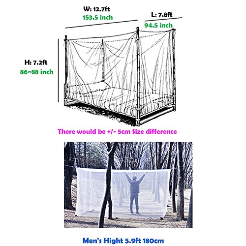 -. Brand : SSoonyi -. Color : White -. EAN : 6600324957949 -. Feature : High in Height Extra large Mosquito Net 9~10 Person / Size: 153.5 (W)x 94.5 (L)x 86~88(H) inches /W 12.7ft x L 7.8ft x H 7.2ft★There would be +/- 5cm Size difference ★Package Contents : 1 x Mosquito Net 6 x strap (59")★Carry packed sIze: 17.7 x 13.7 inches / Not bleach-treated 100% Natural Polyester Mesh ★Harmless to human body with natural material ★There is nothing sticky or buried in your hands. / It is a finely stitched mosquito net that can be used for both, indoor and outdoor purposes. ★The offered mosquito is a perfect option to be carried for camping, terrace and garden. / It's NOT OPEN CURTAIN ★ It Enters from the Bottom Up Trough Canopy Rectangle -. Label : SuperMosquitonetEXlarge -. Manufacturer : SuperMosquitonetEXlarge -. Model : SPEX9 -. PackageQuantity : 1 -. ProductGroup : Lawn & Patio -. ProductTypeName : OUTDOOR_LIVING -. Publisher : SuperMosquitonetEXlarge -. Size : SPLarge -. Studio : SuperMosquitonetEXlarge -. Title : SSoonyi Super Extra Large Mosquito net Bedroom Insect Canopy Camping Netting 9-10 Person Not Bleach-Treated -. Warranty : 40-year-old mosquito net manufacturing plant Made In Korea Hight Quailty