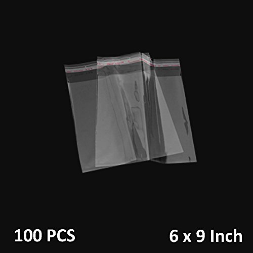 The Elixir Packaging 6 x 9 inch Clear Self Adhesive Sealing Plastic Bags - Pack of 100