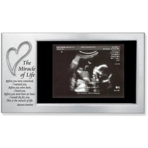 Message on the frame is "The Miracle of Life, Before you were conceived, I wanted you; Before you were born, I loved you; Before you were here an hour, I would die for you. This is the miracle of life. -- Maureen Hawkins" with a silver look heart embellishment.