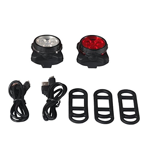 USB RECHARGEABLE BIKE LIGHT SET, AKALE SUPER BRIGHT LED BICYCLE LIGHTS SET FRONT AND REAR, 4 LIGHT MODE OPTIONS, 650MAH LITHIUM BATTERY, BIKE HEADLIGHT, IPX4 WATERPROOF, 2 USB CABLES 3 STRAP INCLUDED
