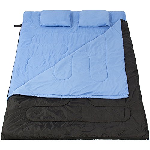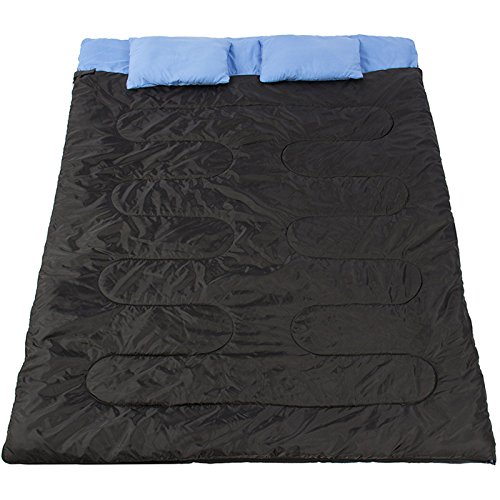 Studio : Felji Publisher : Felji Product Description This envelope-style Double Sleeping Bag is lightweight and can keep you warm at your campsite after a day of hiking and climbing. Its great for use in cabins and camping tents outdoor in temperate conditions. It's made of 210T Polyester, waterproof, comes with 2 pillows and a side zipper for easy entrance. 0