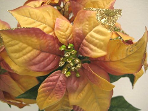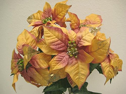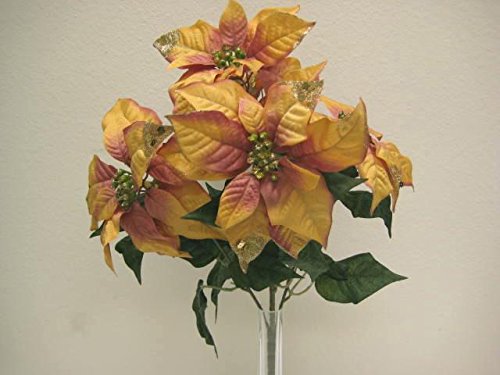 LITE ORANGE Christmas Poinsettia Glitter Bush 5 Artificial Silk Flower 18" Bouquet 139LOR