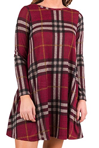 -. Title : BJHG ORIGINALS Womens Plaid P.R.Int Scoop Neck Casual Swing Tunic Mini Dress With Pockets