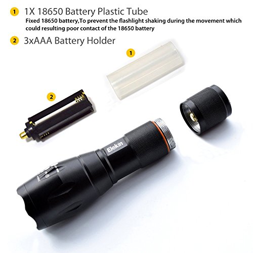 - 【What you get】 2 CREE led flashlights, AAA battery holder and 18650 battery tube (not include batteries), 18 month replacement warranty and lifetime customer support.