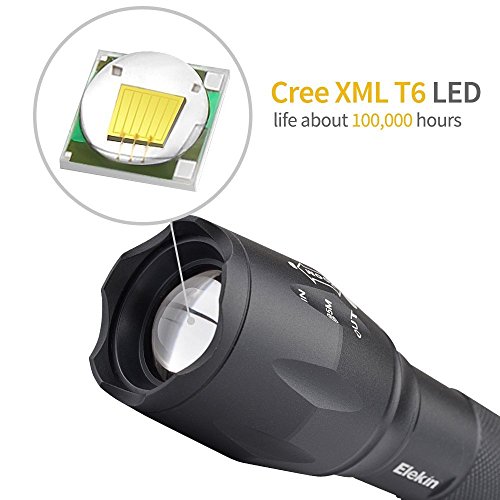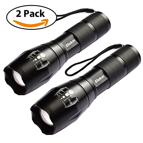 Elekin Flashlight 1000 Lumens T6 LED Flashlight [2 PACK] Aircraft-Grade Aluminum Pocket-Sized LED Torch, 5 Mode Adjustable Focus Zoom, High/Middle/Low/Slow Strobe for Indoor & Outdoor