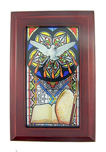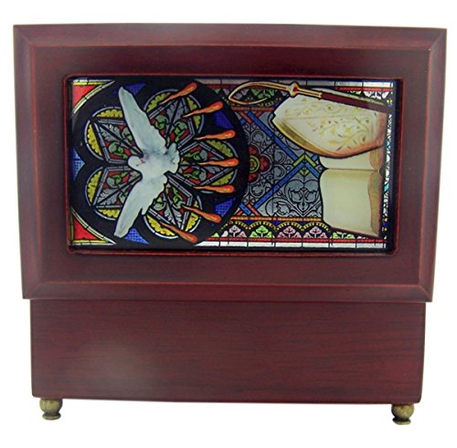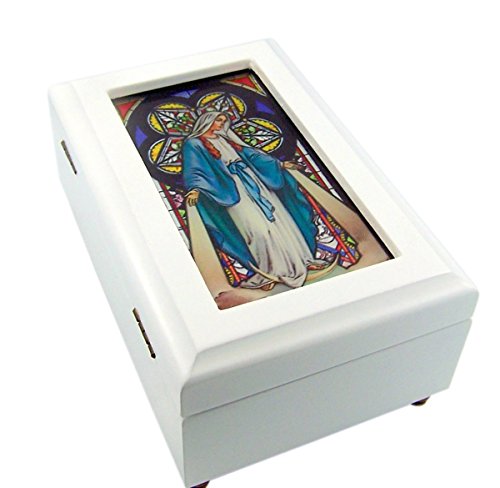 -. Title : Catholic Religious Stained Glass Wood Musical Jewelry Box, 6 1/2 Inch