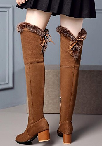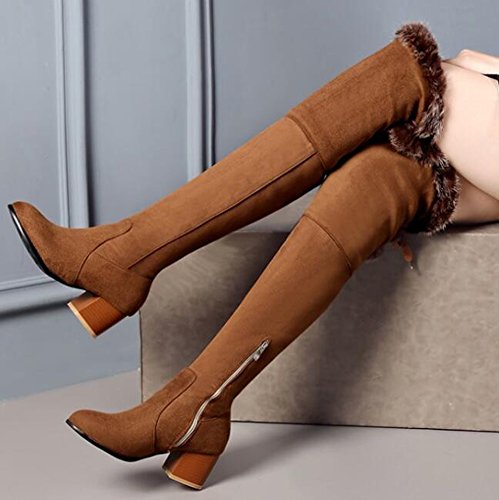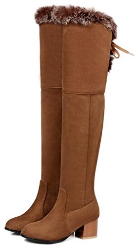 Binding : Apparel Product Description When you walk in the street or take part in some special occasions, do you want to be charming and attractive among others? Or are you tired of wearing the same booties with others? How could you miss these trendy outfits? This pair of comfy boots has zipper decorated on the side. You will like their antiskid, durable and waterproof design. With the chunky heel, you could be at ease when you dress in the comfortable shoes. Many people are in favor of its casual, fashion and elegant style with the closed round toe, fluffy fur, lace up, knee high and solid color. In the fall and coming winter, it's a must. They can fit any formal occasions, like wedding, party and club. With one, you will be the focus of fashion. Young ladies can buy one with your close friends. They are a wonderful gift. They are also easy-matching. Choose one suitable size so that it could fit you well. Welcome to our store. IDIFU?is?a?registered?trademark?in?the?USA. We always work on helping every fashion lady to be unique and different. As a trendsetter, YOU ARE DIFFERENT! 0