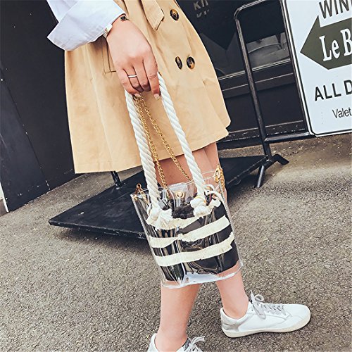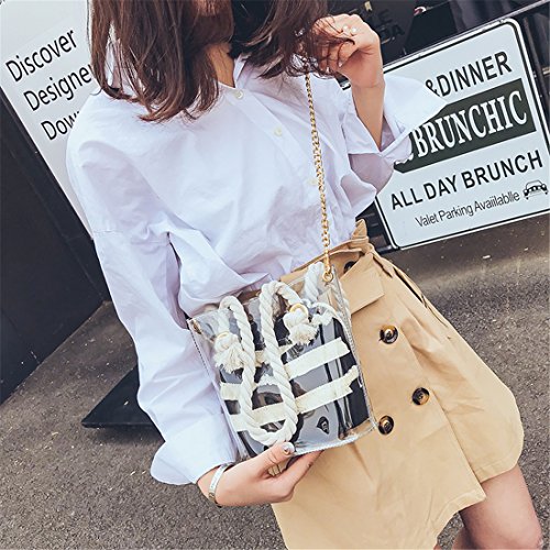 Women's 2 IN 1 Bucket Bag Clear Chain Bag Jelly Shoulder Bag