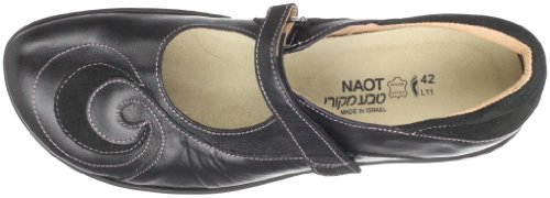 -. Binding : Apparel -. Brand : Naot -. ClothingSize : * -. Color : Black Suede/Black Shiny -. Department : womens -. Feature : Great arch support / Unique contrasting swirl design / Padded back / 1.5 inch polyurethane sole with a metal shank / Medium to wide fit -. Label : Naot -. Manufacturer : Naot -. Model : Sea -. MPN : 25505824 -. NumberOfItems : 1 -. PackageQuantity : 1 -. PartNumber : 25505824 -. ProductGroup : Shoes -. ProductTypeName : SHOES -. Publisher : Naot -. Size : 37 European US Women -. Studio : Naot -. Title : Naot Women's Sea Mary Jane Flat