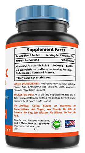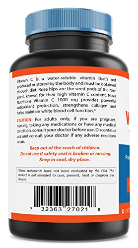 Nova Nutritions C-1000 (time released) provides a potent dosage of this key vitamin and is blended with Rose Hips and Bioflavonoids, which are natural synergists to Vitamin C. It provides powerful antioxidant protection, strengthens collagen and maintains white blood cell function.*Feature