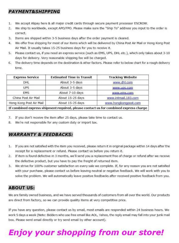 Environmental Standard:Lead free, Nickel free, Cadmium free