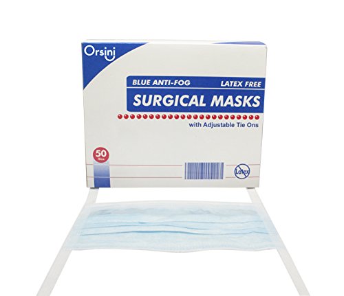 -. Title : Orsini Anti-Fog Procedure Face Masks with Ties, One Size Fits Most Blue (Pack 50)