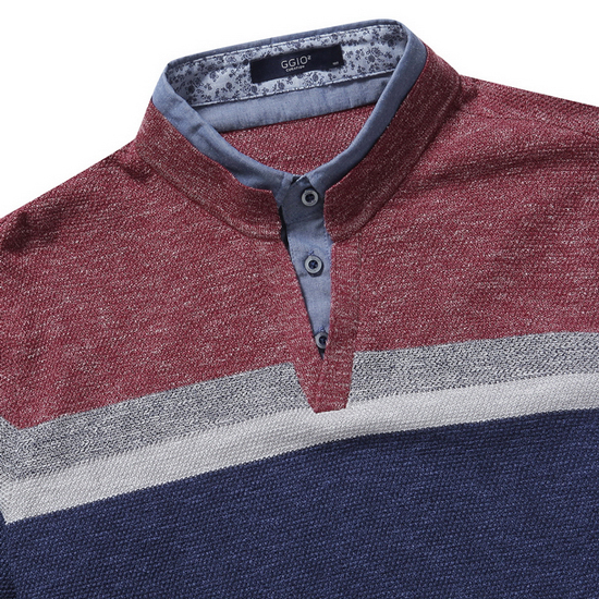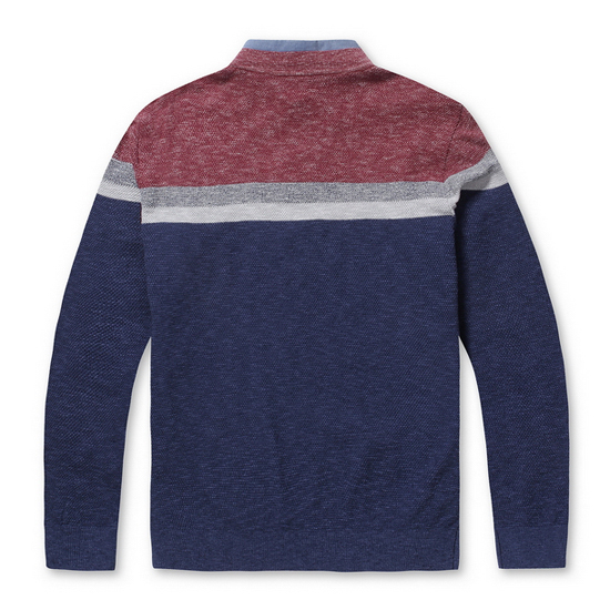 - 블럭 배색을 적용한 믹스 니트 짜임의 남성 니트.