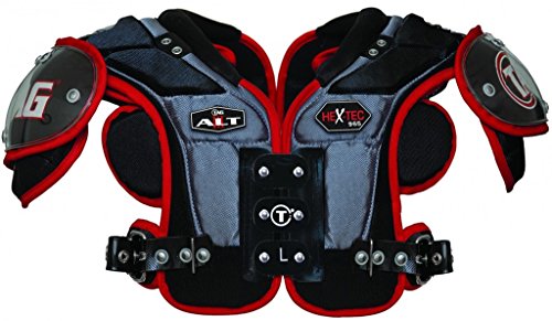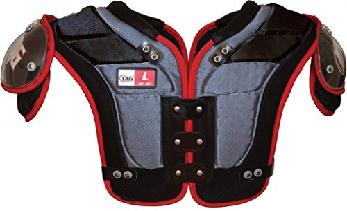 Studio : TAG Inc Publisher : TAG Inc Binding : Misc. Product Description The TAG ALT III 965 Shoulder Pad is a lightweight, low-profile shoulder pad featuring corrugated sub arches and a clavicle build up system with NX210 Hex-Tec padding over the shoulders and NX200 in the lower front and back areas. Advanced technology has 25% better energy absorption than old honeycomb pads. The 965 is 20% lighter than most other pads and is designed for durability, comfort and flexibility. Poly carbonate epaulets for high energy transformation. 1 1/2" belt and buckle hook-up system. Features Velcro removable deltoid pads, an easy fit swivel front and back closure system, and stainless steel hardware. Aegis Antimicrobial breathable mesh lining treatment. Great football shoulder pads for offensive and defensive lineman. Velcro attachable rib pads and back plates are available. Please note, TAG accessories are designed to fit TAG equipment for the best protection and performance. The use of third party accessories compromises the quality and protection of TAG equipment. Use of third party accessories on TAG equipment will void the TAG warranty. Choose size M-3XL. 0