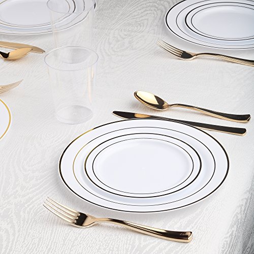 Kaya Collection - Disposable White with Gold Rim Plastic Round 9" Buffet Plates - 2 Pack (20 Plates)