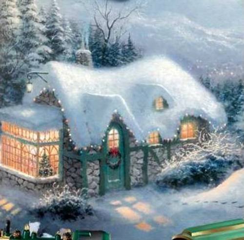 Winter Wonderland Santa Illuminated Tabletop Santa by Thomas Kinkade 2 Moving Trains, Animated