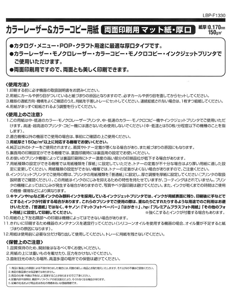 LBP-F1330 100 pieces Kokuyo color laser and color copy paper double-sided printing Matte Paper Heavyweight A3 (japan import)