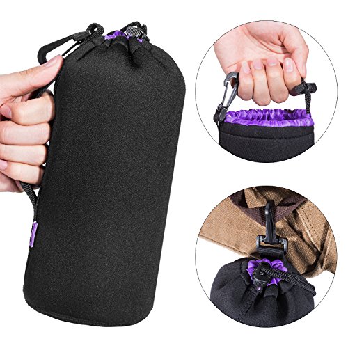 Durability: These lens pouches are made of neoprene, very soft and elastic, but durable to hold and protect your lens, with belt loops & quick clips, easy to carry and place