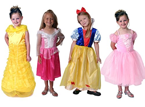 -. Brand : Making Believe -. Department : girls -. Feature : Includes 4 classic P.R.Incess dresses / Great value pack to add to your dress up trunks or for gifts and birthdays / Fun for Halloween costumes, theme party favors, gifts and everyday dress up / Your little P.R.Incess will enjoy hours of pretend play fun with this colorful set / Dress style may vary slightly -. ProductGroup : Apparel -. ProductTypeName : CHILDRENS_COSTUME -. Title : Making Believe Classic Storybook P.R.Incess Dress 4 Pack Set (Choose Style)