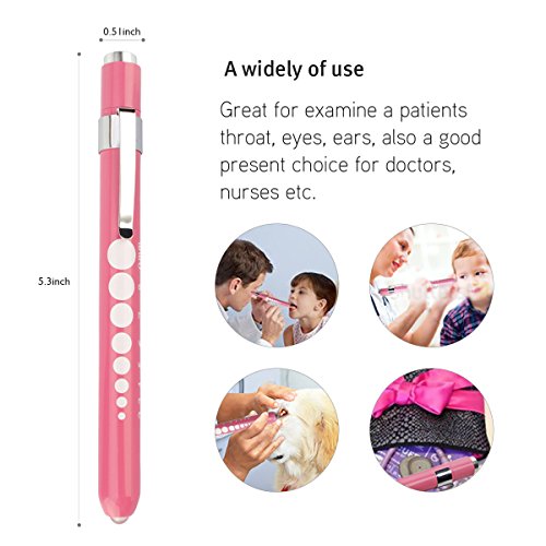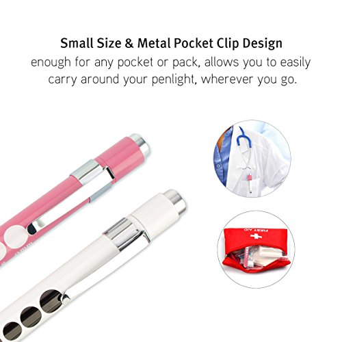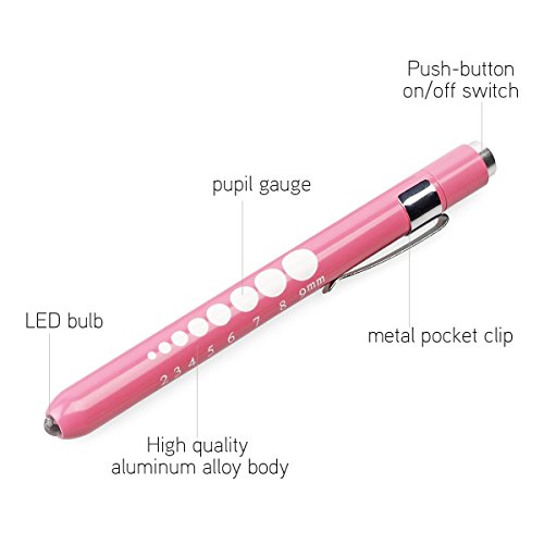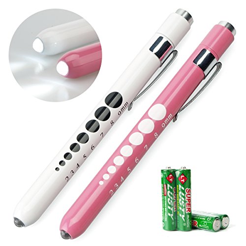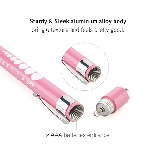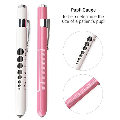 Opoway Pen Light with Pupil Gauge LED Penlight Medical for Doctor Nurse Diagnostic Batteries Free 2ct. Pink and White