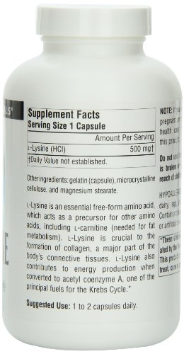 -. Title : Source Naturals L-Lysine, Free Form, 500mg, 200 Capsules