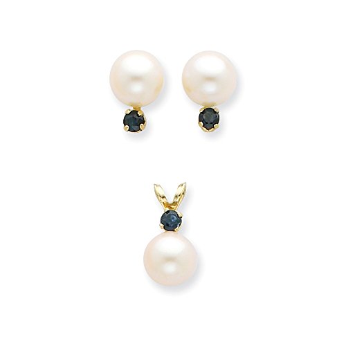 -. Title : 14k 7-8mm White Freshwater Cultured Pearl & Sapphire Stud Ear & Pendant