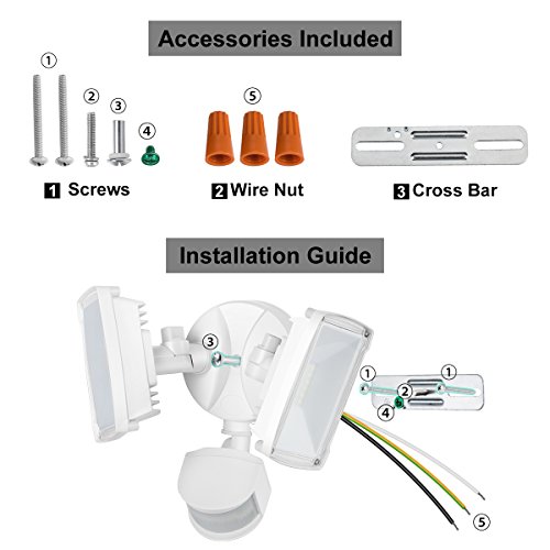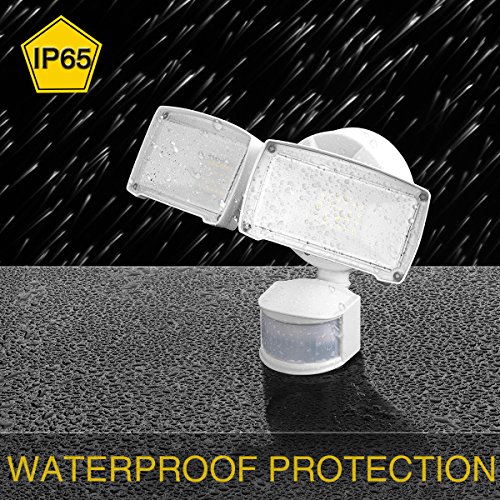 - 【FULLY WEATHERPROOFED】IP65 waterproof rating ensures that your led motion security light can handle to rain, sleet or snow.