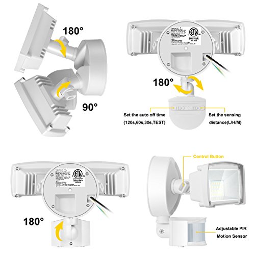 - 【HIGH PERFORMANCE】2 ultra-bright LED light heads, produce up to 1600lm high brightness clear white light, provide efficient lighting and adds extra safety to your home.