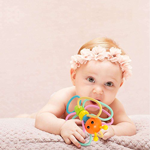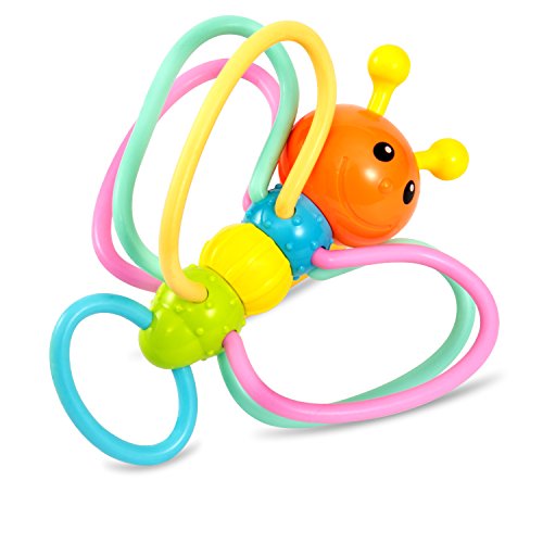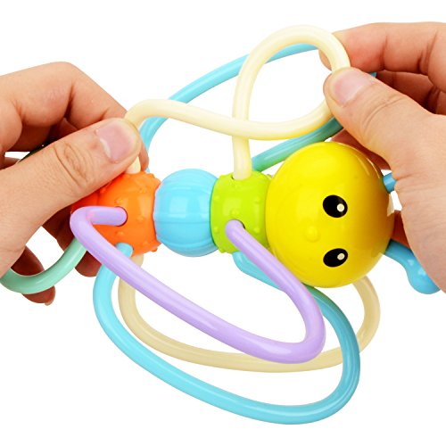 is not only an Educational Grasping Rattles, also an Infant Teether, features soft silicone teething surfaces that help relieve sore gums and protects baby from scratching, lessen the chance of developing blisters from thumb sucking.