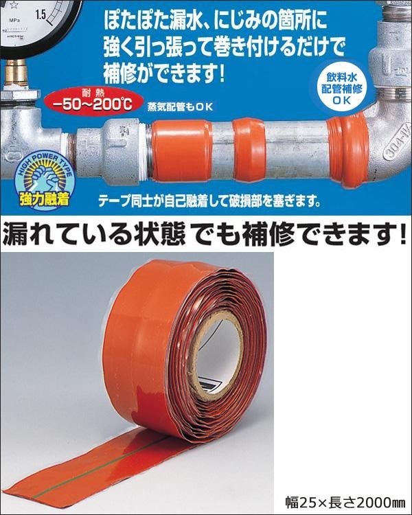 強く引っ張りながら巻き付けると、テープ同士が自己融着し、配管やホースの漏れ、にじみ、ピンホールなどの破損部や隙間に密着。圧力が掛かった状態でも簡単に補修できるテープです。ほとんどのパイプやホースの補修に使え、絶縁テープとしてもご使用いただけます。 |