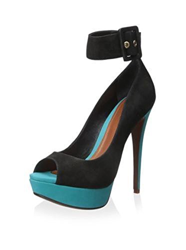 (SCHUTZ)/Women's/Pumps/DIRECT FROM USA/SCHUTZ Sharlene Nobuck Preto Black Torquoise Buckle Platform Peep Toe Heels