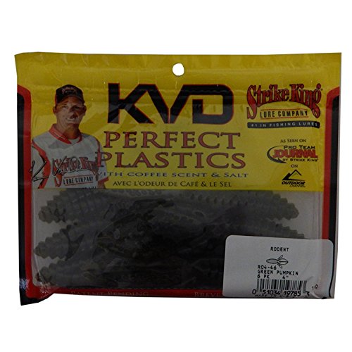 ReleaseDate : 2010-08-02 Studio : Strike King Lure Company Publisher : Strike King Lure Company Binding : Sports Product Description Strike King's Perfect Plastics are the softest, saltiest plastic lures ever produced and feature Strike King's exclusive coffee scent (patent pending). These baits contain the world's best blend of soft plastic ingredients! This allows use of large amounts of salt yet keep the bait soft, pliable and fishable. Coffee adds to the appeal as it masks human scents and oils and causes added bites and longer hold times which increase your hook-up chances. The Rodent will search them out in heavy cover and is 4 inches long. 0