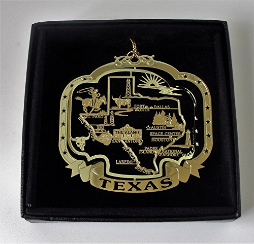 Texas State Brass Christmas Ornament Black Leatherette Gift Box