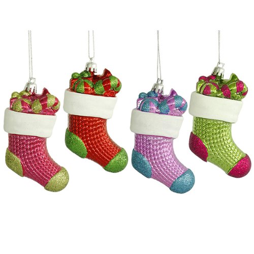 Vickerman 4 Count Glittered Multicolored Shatterproof Stocking Christmas Ornaments, 4"