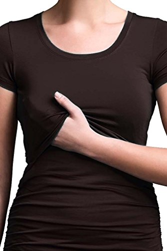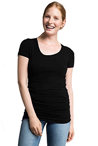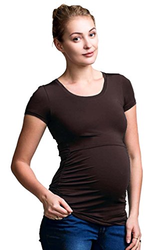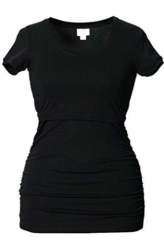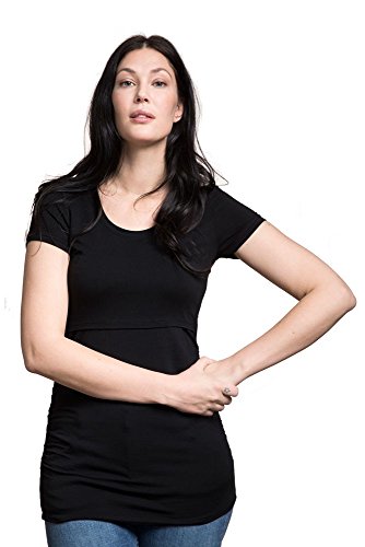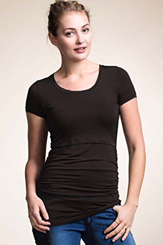 Binding : Apparel Product Description Double function short sleeved top for maternity and nursing. Ruched sides give a flattering fit over the belly, both during and after pregnancy. To breastfeed, just lift up the panel at the bust. Soft knitted stretch fabric Sizing:(Order Pre-pregnancy Size) Extra Small=0-2 Small=4-6 Medium=8-10 Large=12-14 Extra Large=16-18 95% lyocell and 5% elastane. Machine washable 0