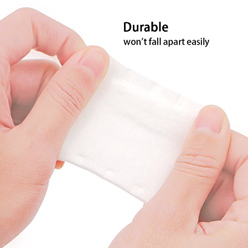 - Lint Free Facial Cotton Pads: Thoes square cotton pads are durable yet they are soft. They don't leave little fuzzies and peeling apart like typical cotton rounds.Bring your beloved beauty spa straight to your bathroom with these professional skincare essentials used by top,you will happy to have it since they are no rolling, no tearing, no cotton fibers left on your face.