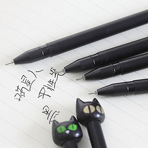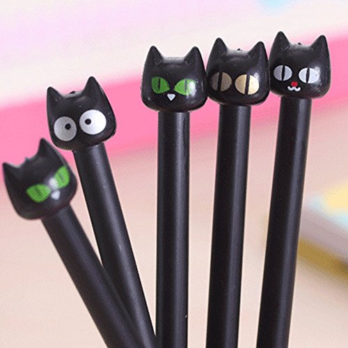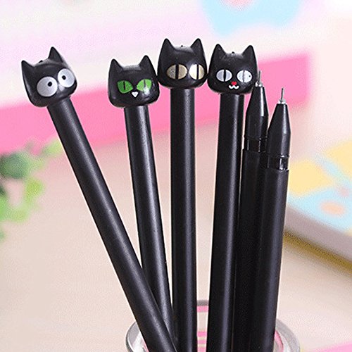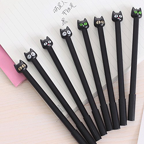 -. Title : CQI Pack of 8 Kawaii Cartoon Black Cat Expressions Emoji Design Gel Ink Rollerball Pens